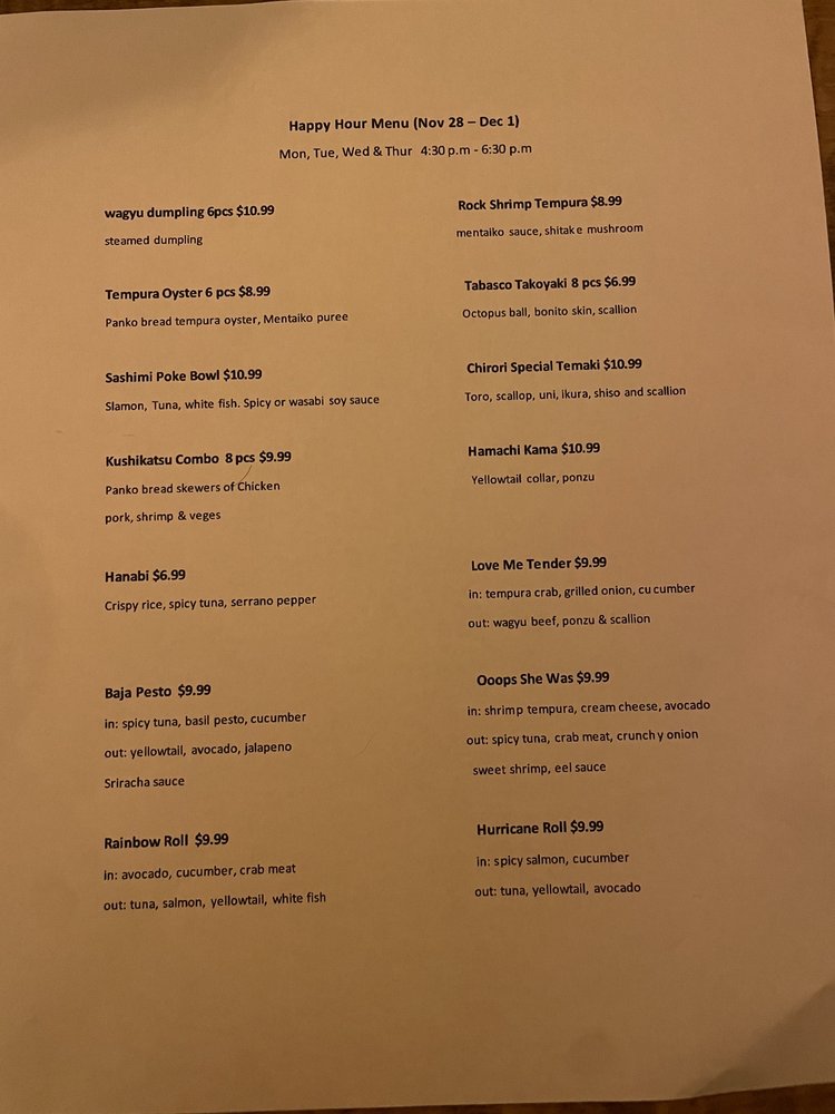 Chirori - Omakase & Sushi Menu